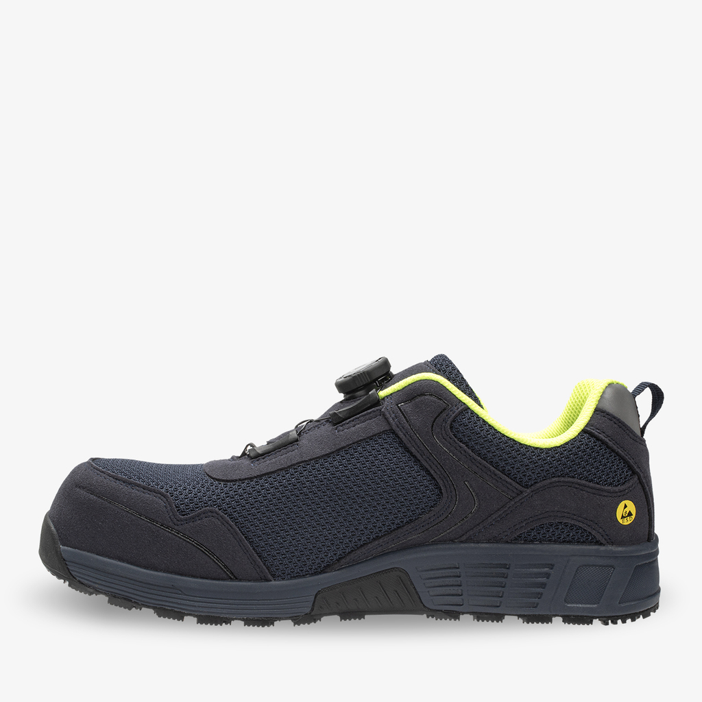 用更少的材料制造更多的产品。ECOLOBI 采用可回收鞋面,在保护双脚的同时最大限度地减少了对环境的影响。这款无金属安全鞋采用复合材料鞋头、轻质设计和防静电保护。橡胶外底具有出色的防滑性,同时还能耐油、耐燃料、耐化学品和极端温度。ECOLOBI 采用超宽设计,为您的双脚提供充足的空间,并采用了我们独创的 TLS(扭锁系统)闭合装置,可快速、安全、轻松地实现精准贴合。